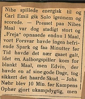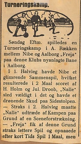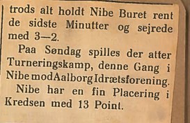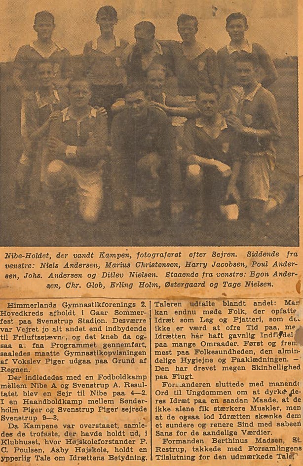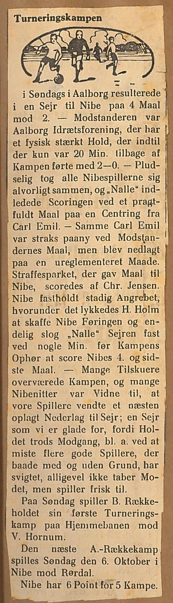 Et af de første udklip må være fra begyndelsen af 30'erne. Nibes A-Rækkehold mødte Aalborg Idrætsforening.