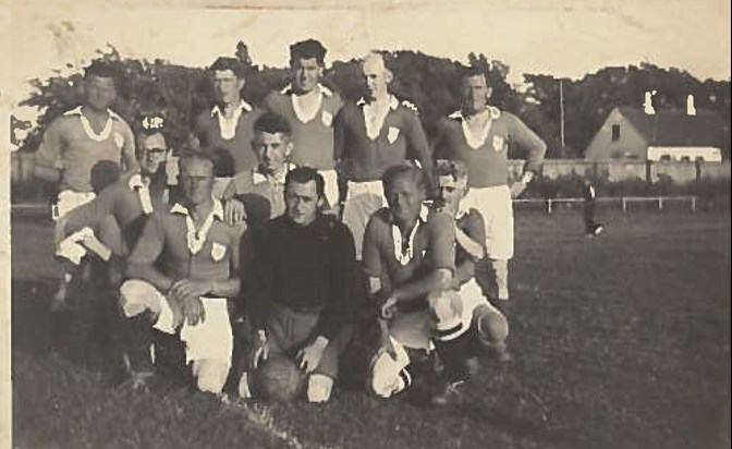 Dengang i 30'erne klædte vi om på Sportscaféen. Herefter gik vi langs banen ud på boldpladsen ved Gasværket.