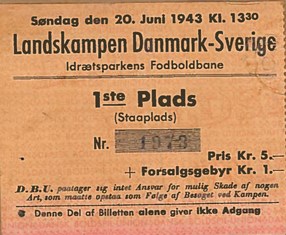 I 1943 var Niels til landskamp i PARKEN (Idrætsparkens Fodboldbane). Modstaderen var Sverige. Billetprisen var den svimlende pris af 5 kr. for en ståplads. Kampen endte 3 - 3.
